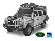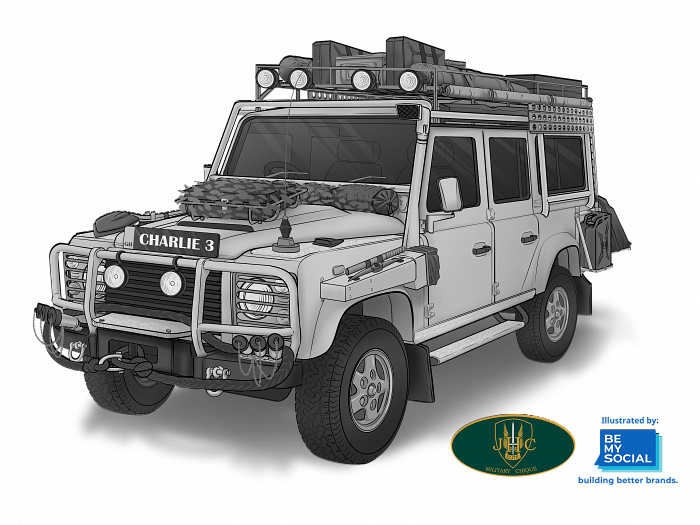 Charlie 3: - Designed for long range cruising both in GB and Europe with LPG conversion particularly for European Tours. V8 with automatic gearbox. Fully equipped for four crew, with comfort in mind, extended leg room for the rear seating area.. Side awning and net shade protection panel, electric cold box, beautifully equiped picnic hamper, dining table and field chairs. Kinetic energy extraction tow rope, purpose built and refined air induction system allowing for deep wading and clean air in desert conditions.